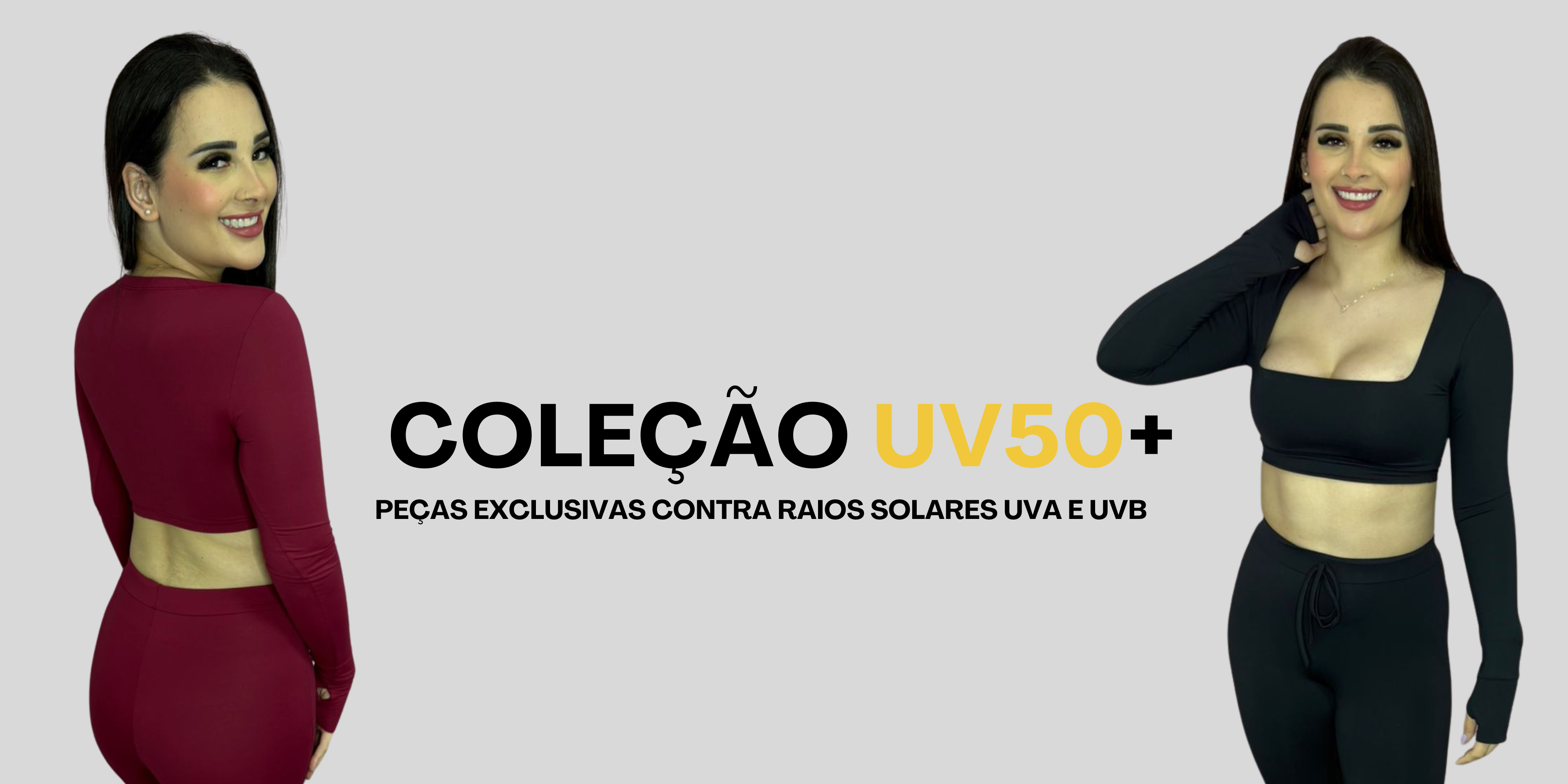 Cada modelo é confeccionado em tecido com proteção UV50+, que bloqueia até 98% dos raios solares, garantindo beleza, segurança e praticidade em cada look.